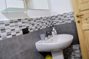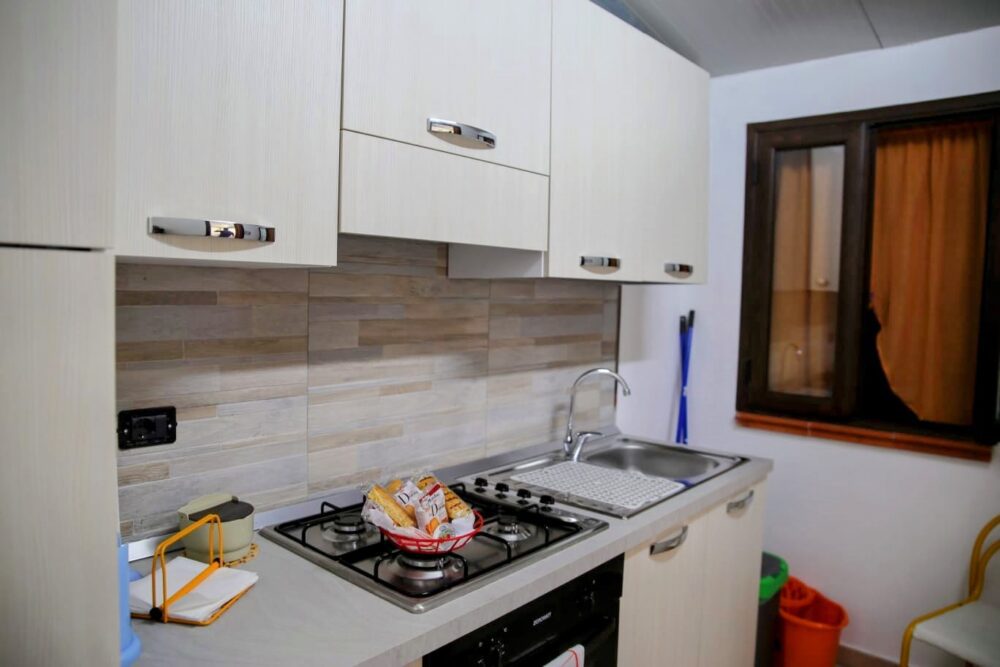 Ascend to the upper floor to find a cozy and private bedroom sanctuary. Retreat to the comfort of the bedroom after enjoying the vibrant atmosphere of Terrasini.Additional Sofa Bed: