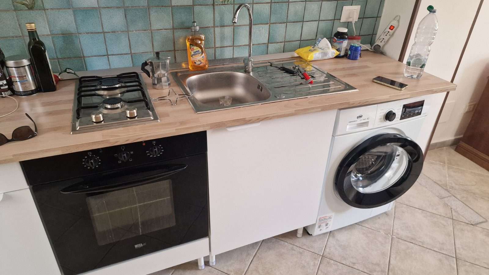 The kitchen area is equipped with an oven and essentials, so you can cook proper meals at home and take advantage of having Lidl right across the street.